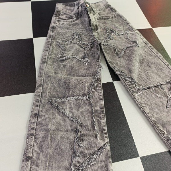 Telas, diseños y detalles: Jean wide leg de excelente calidad con apliques desflecados en forma de estrella, corte ancho y pasa cinto. Excelente opción para esas pequeñas que les gusta lucir cancheras sin sentirse incómodas.